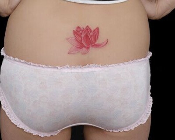 出淤泥而不染 红色荷花女生腰部纹身图片
