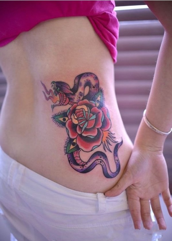 分享一款腰部时尚性感的蝶恋花纹身图案_腰部纹身图案大全_纹身图吧