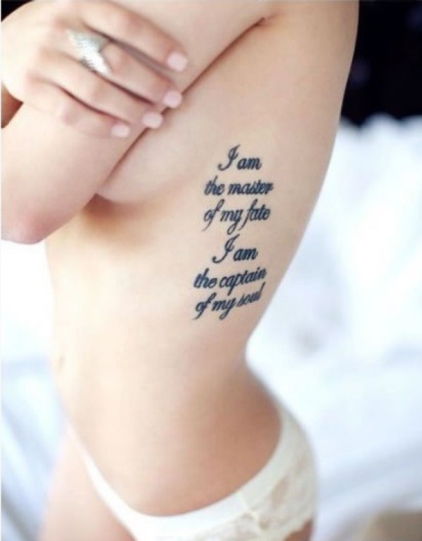 美女侧腰上感性的字母纹身
