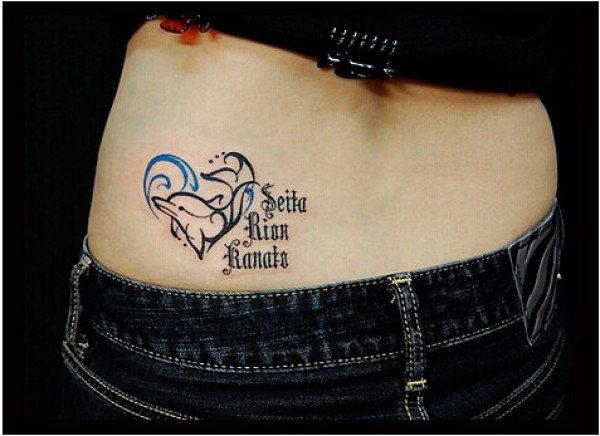 分享一款腰部时尚性感的蝶恋花纹身图案_腰部纹身图案大全_纹身图吧
