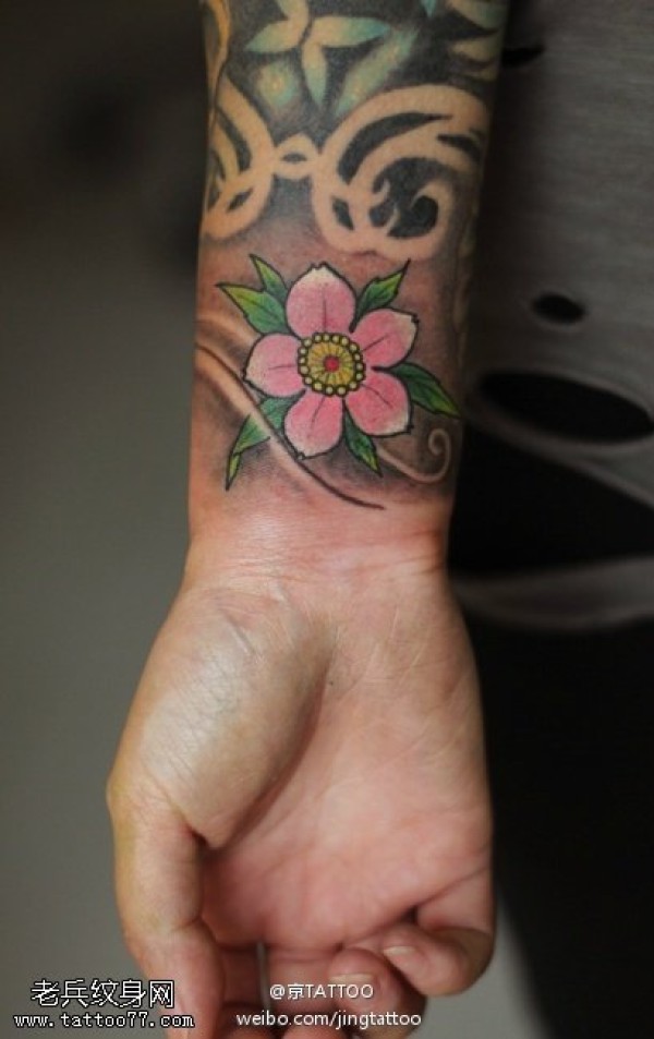 手部个性盛开莲花纹身图片_植物纹身图案大全_纹身图吧