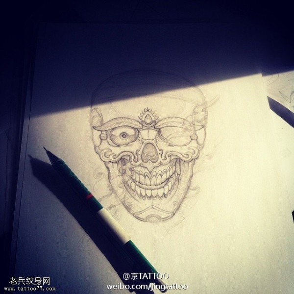 能面万媚纹身手稿_52张日式能剧面具纹身手稿图案素材欣赏