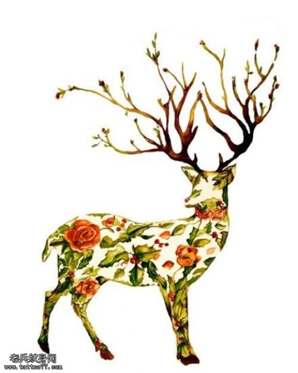 彩色个性羚羊纹身手稿图