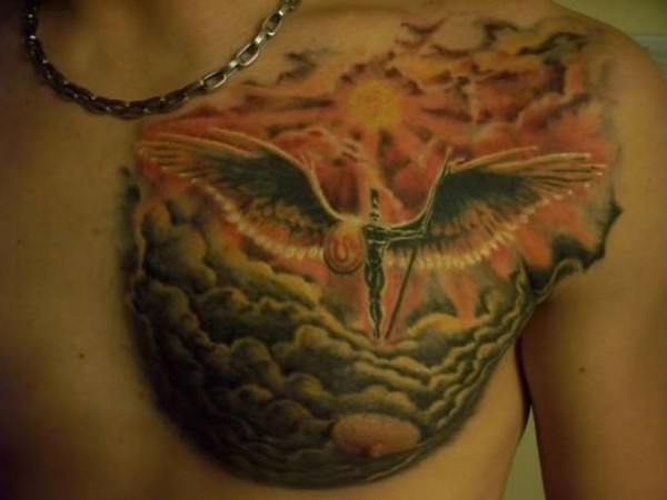 胸部各种场景与主题的天使纹身图案大图片