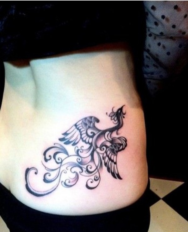 女生腰部时尚精美的图腾凤凰纹身图图片