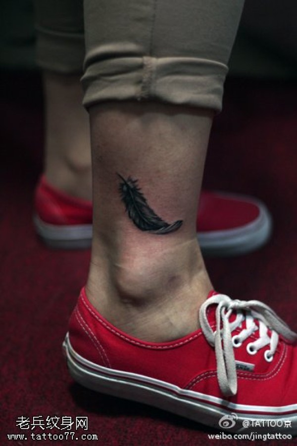 脚踝羽毛文身作品
