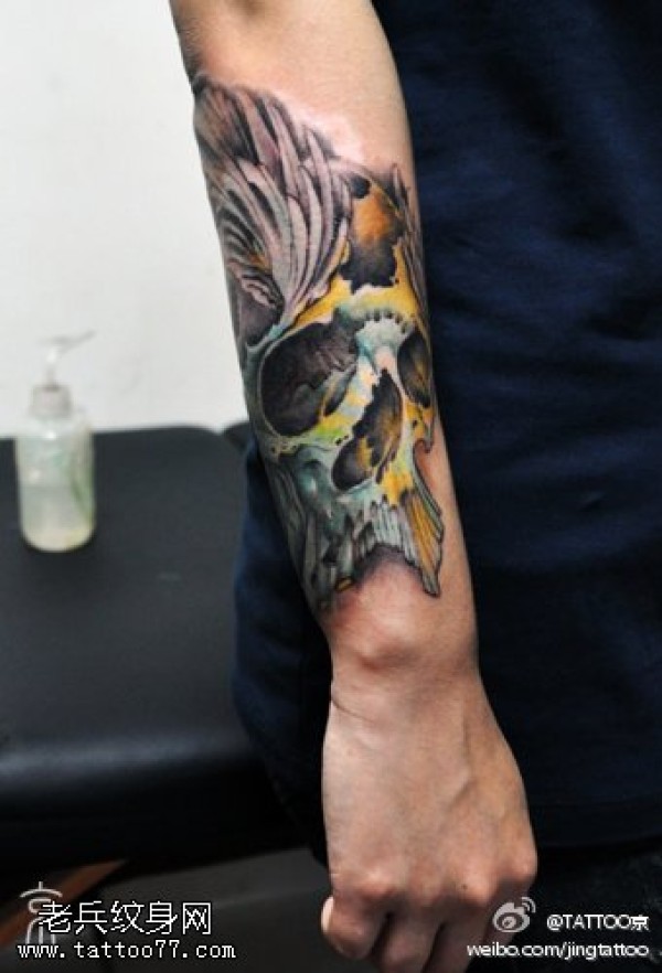 个性手臂悲伤的骷髅纹身图案图案图片_骷髅纹身图案大全_纹身图吧