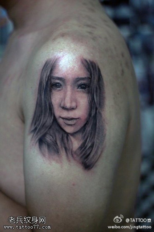 女性肩部肖像刺青_肖像纹身图案大全_纹身图吧