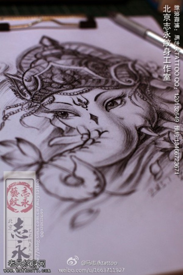 能面万媚纹身手稿_52张日式能剧面具纹身手稿图案素材欣赏