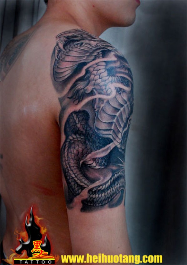 龙纹身手稿_一组老传统黑灰龙手稿纹身图案