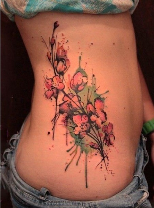 分享一款腰部时尚性感的蝶恋花纹身图案_腰部纹身图案大全_纹身图吧