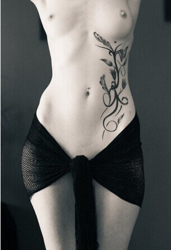 开放女生腰部漂亮清新花藤图纹身图片