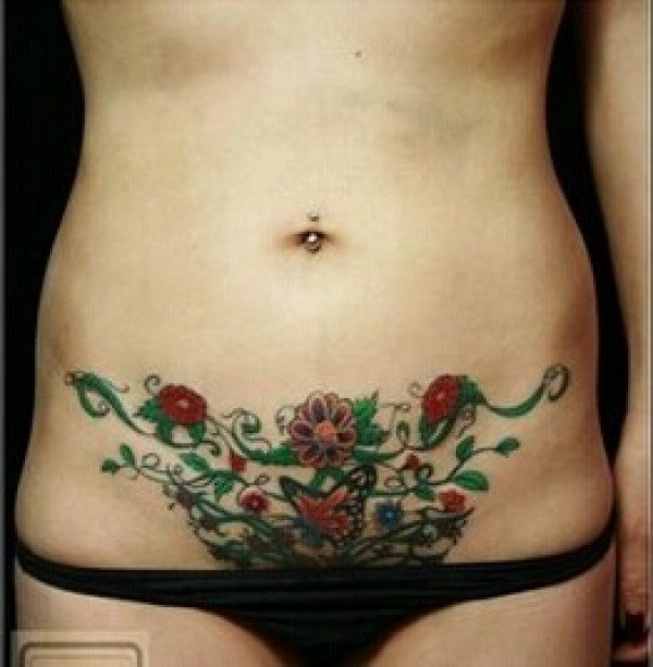 分享一款腰部时尚性感的蝶恋花纹身图案_腰部纹身图案大全_纹身图吧