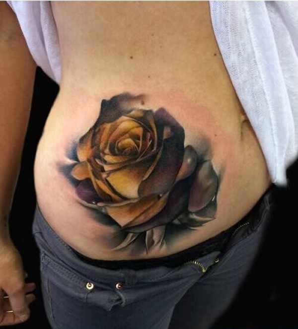 美女腰部玫瑰花纹身图案