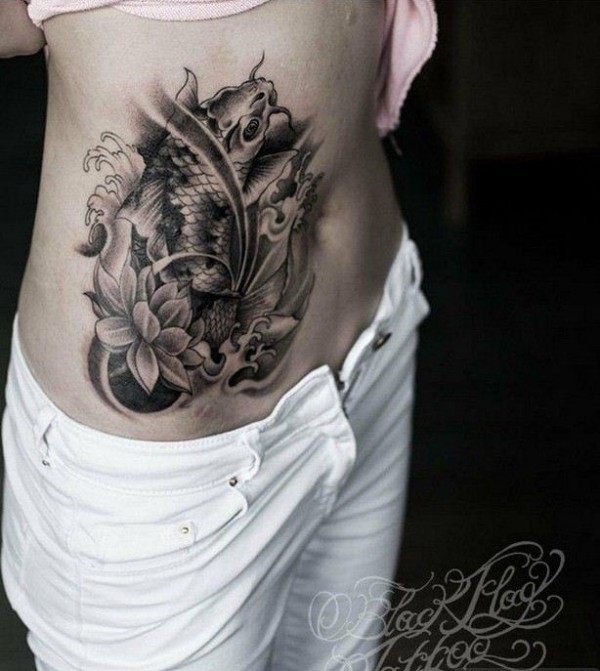 女性腰部莲花花纹刺青_腰部纹身图案大全_纹身图吧