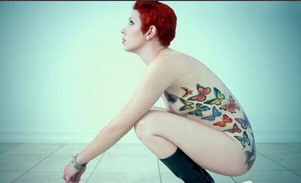 欧美女生腰部N个花样蝴蝶漂亮纹身图片