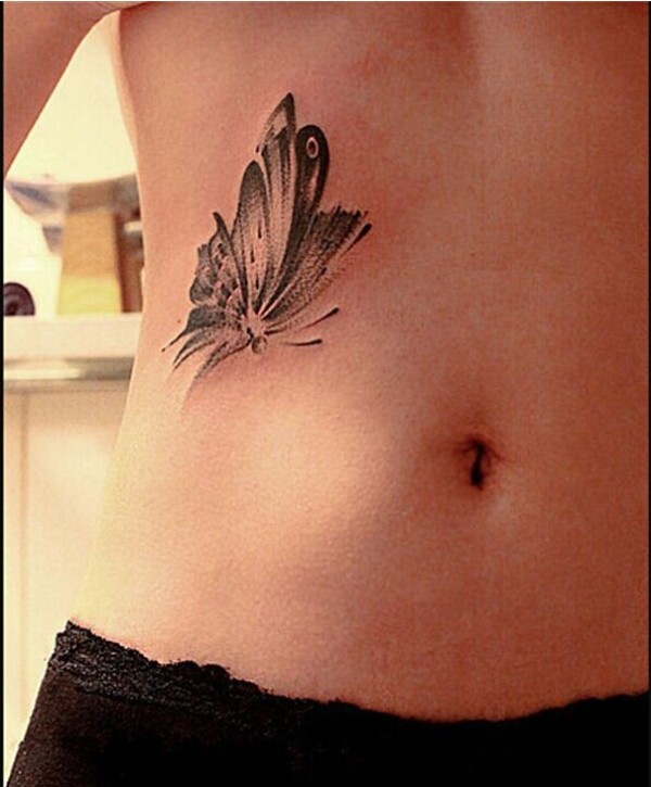 性感腰部蝴蝶纹身图案