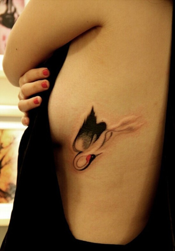 分享一款腰部时尚性感的蝶恋花纹身图案_腰部纹身图案大全_纹身图吧