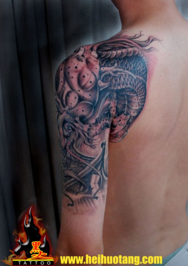 日式手彫刺青作品—半甲龙很感谢客户认可手彫刺青,手彫是日本纹身的手工雕刻技术,时间可以追溯到日本17世纪的江户时代。19世纪,手彫技术被日本黑帮挪用,被用作入会仪式,象征着从此就是江湖中人。在日式传统