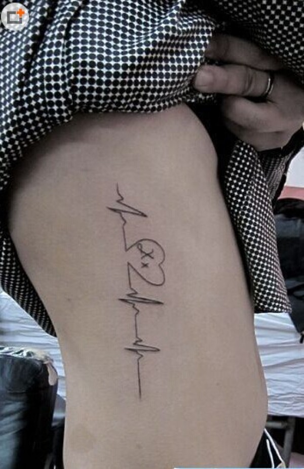 女生侧腰心电图纹身