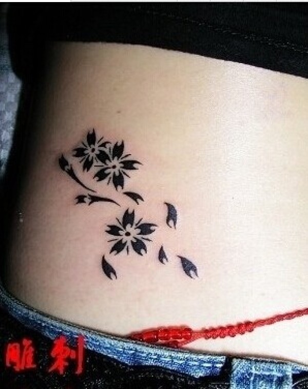 女性腰部莲花花纹刺青_腰部纹身图案大全_纹身图吧