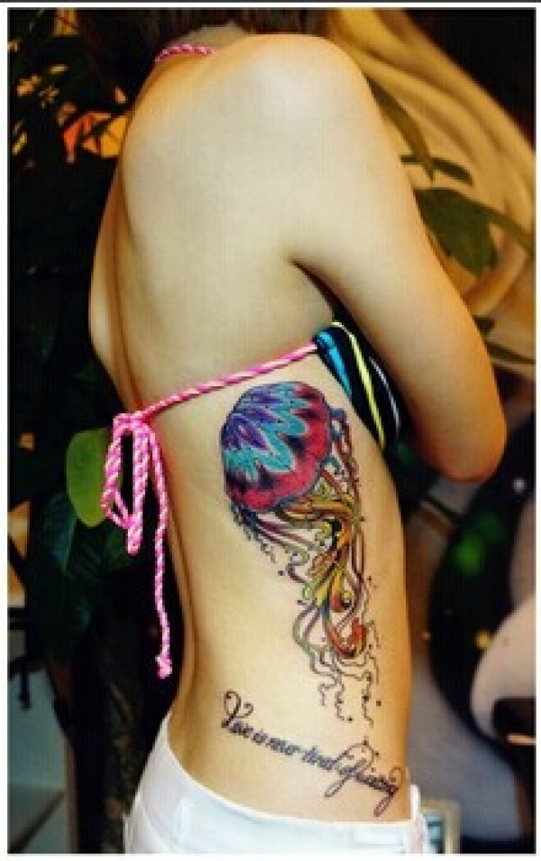 分享一款腰部时尚性感的蝶恋花纹身图案_腰部纹身图案大全_纹身图吧