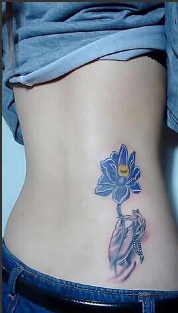 女性腰部莲花花纹刺青_腰部纹身图案大全_纹身图吧