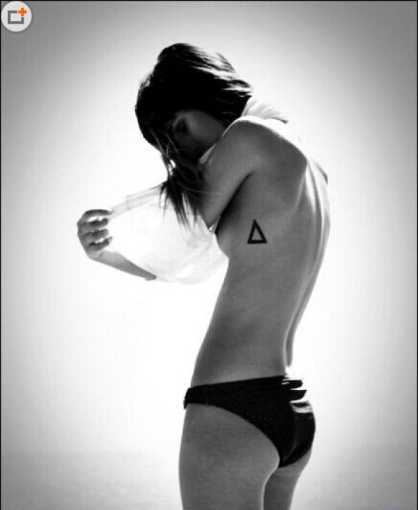 女生侧腰三角形纹身图案