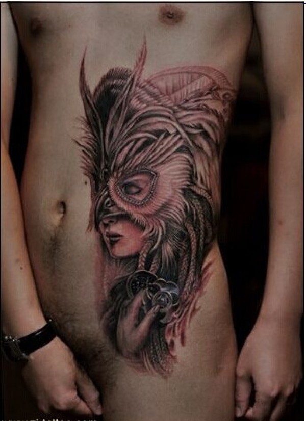 经典超酷腰部美女面具纹身图片图片