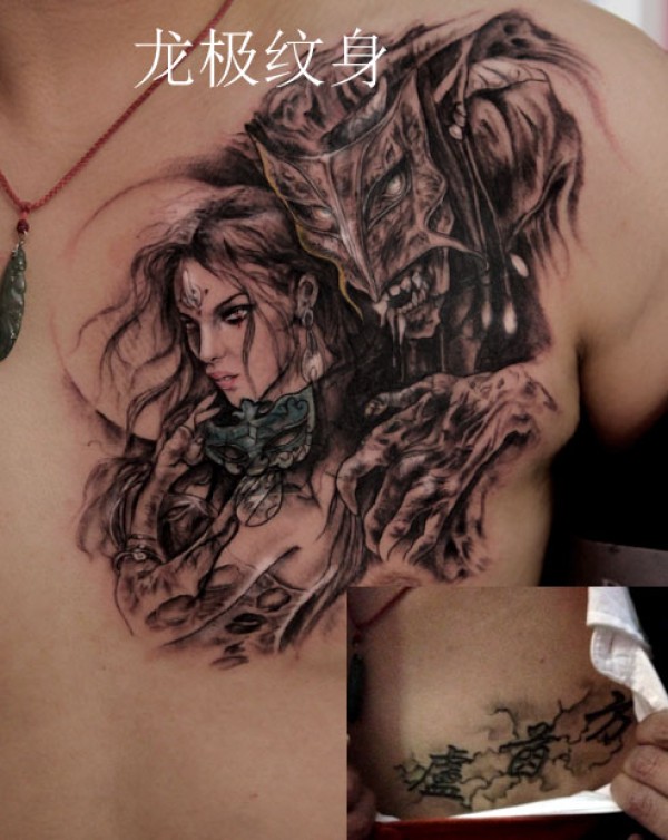 能面万媚纹身手稿_52张日式能剧面具纹身手稿图案素材欣赏