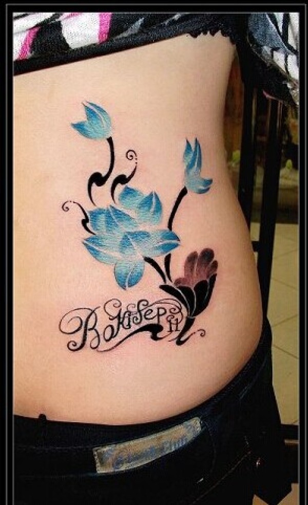 女性腰部莲花花纹刺青_腰部纹身图案大全_纹身图吧