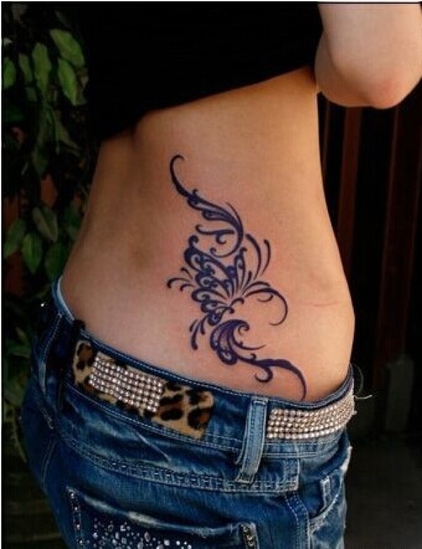 分享一款腰部时尚性感的蝶恋花纹身图案_腰部纹身图案大全_纹身图吧