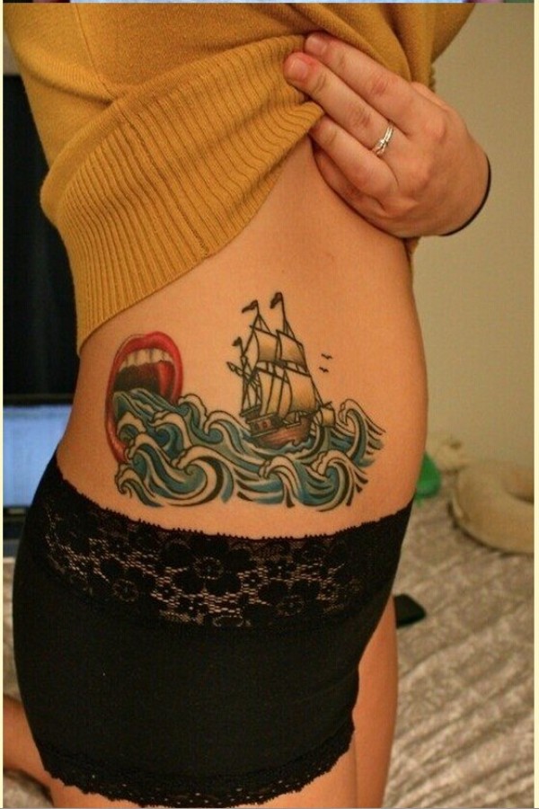 女性腰部莲花花纹刺青_腰部纹身图案大全_纹身图吧
