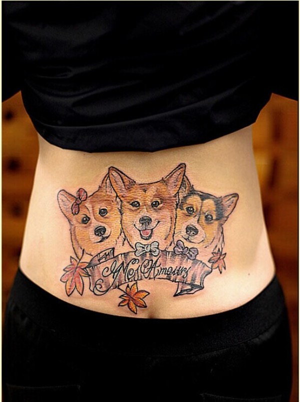 性感女生漂亮腰部狗狗纹身图片 图片