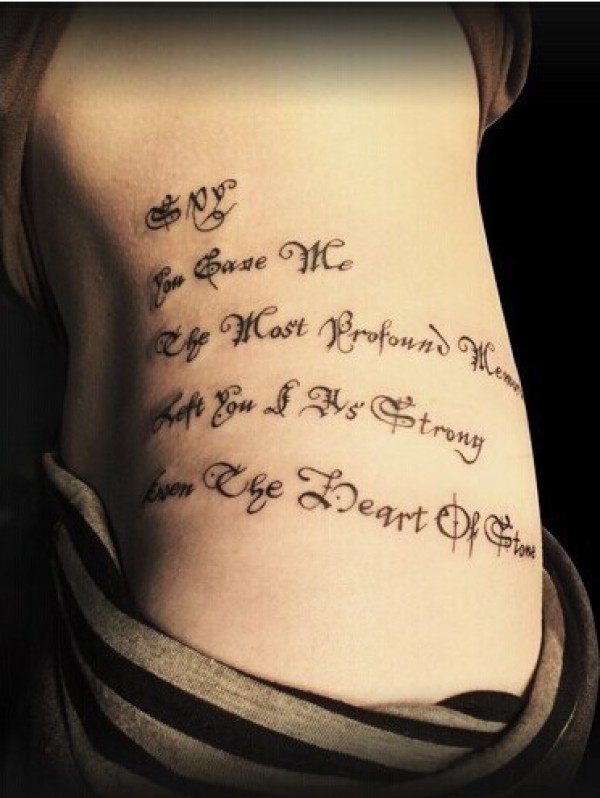 漂亮女生腰部唯美清新爱情诗句纹身图图片
