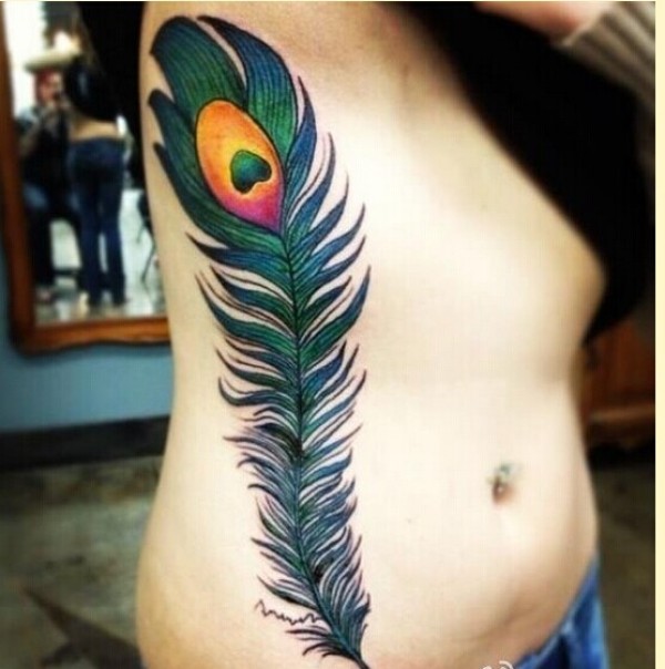 个性时尚侧腰羽毛纹身图案欣赏图片