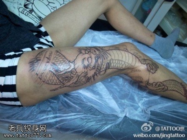 花腿纹身--一组大黑腿纹身图案作品欣赏