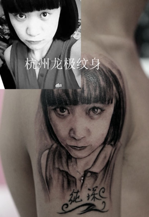 女性肩部肖像刺青_肖像纹身图案大全_纹身图吧