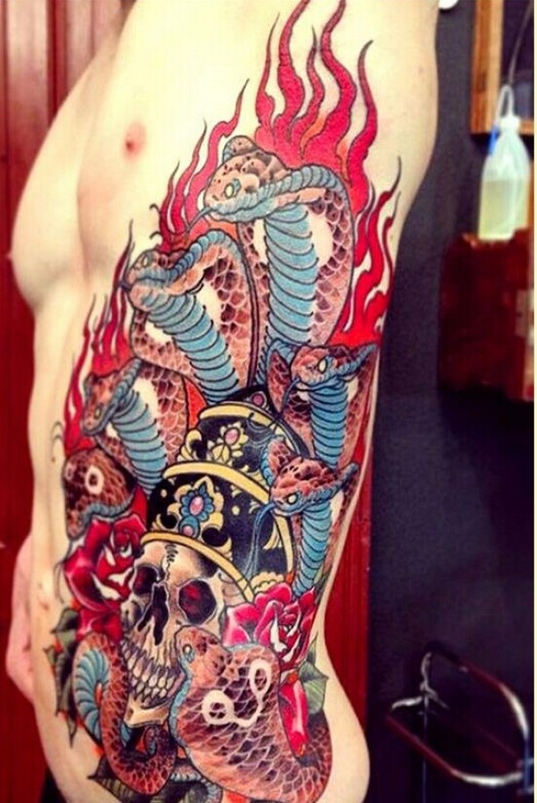侧腰霸气老虎头纹身_腰部纹身图案大全_纹身图吧