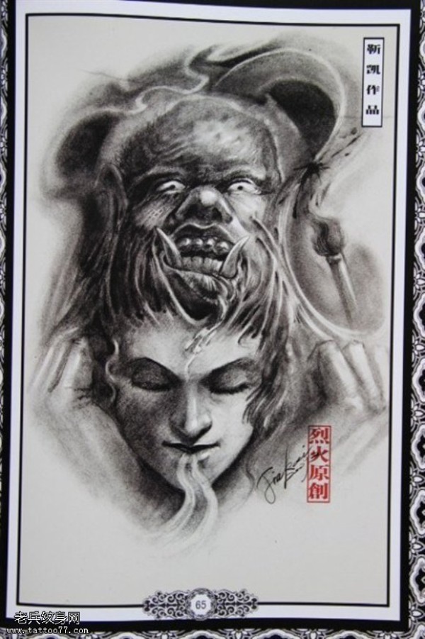 能面万媚纹身手稿_52张日式能剧面具纹身手稿图案素材欣赏