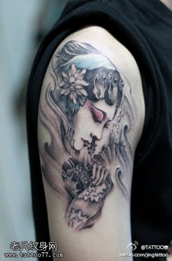 女生肩花纹身_15张女性双肩对称的肩花纹身图案作品图片
