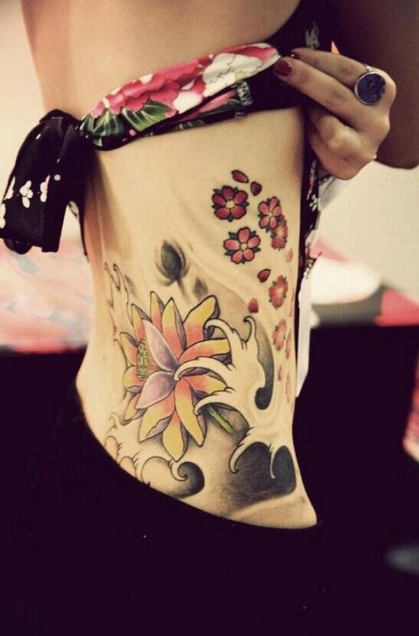 女性腰部莲花花纹刺青_腰部纹身图案大全_纹身图吧