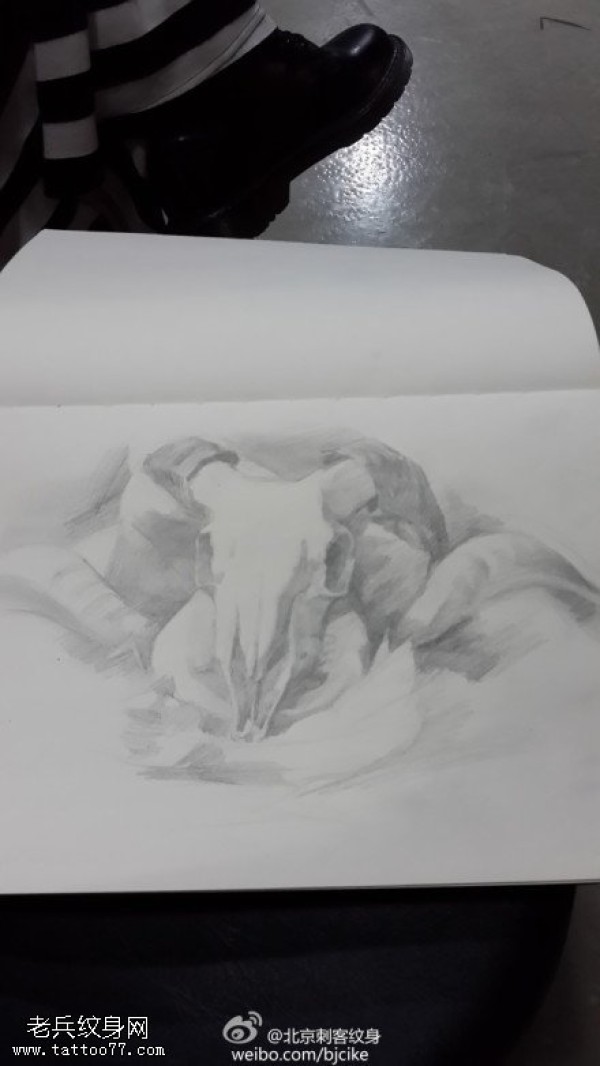 生动形象羚羊头纹身图案手稿