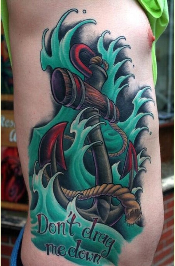 个性男士侧腰船锚纹身图案