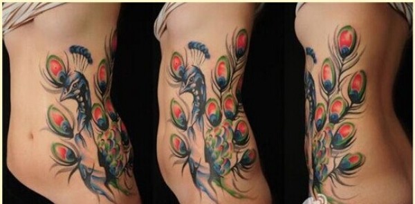 分享一款腰部时尚性感的蝶恋花纹身图案_腰部纹身图案大全_纹身图吧