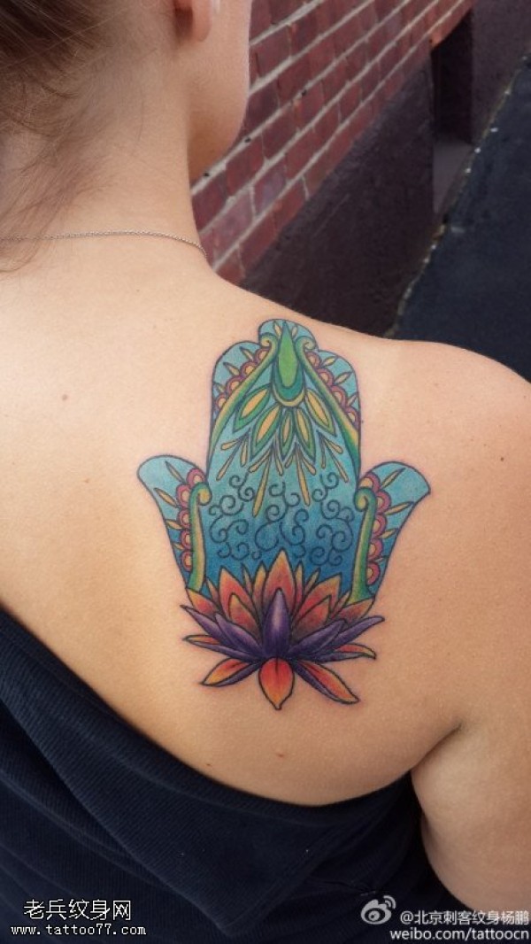 手部个性盛开莲花纹身图片_植物纹身图案大全_纹身图吧