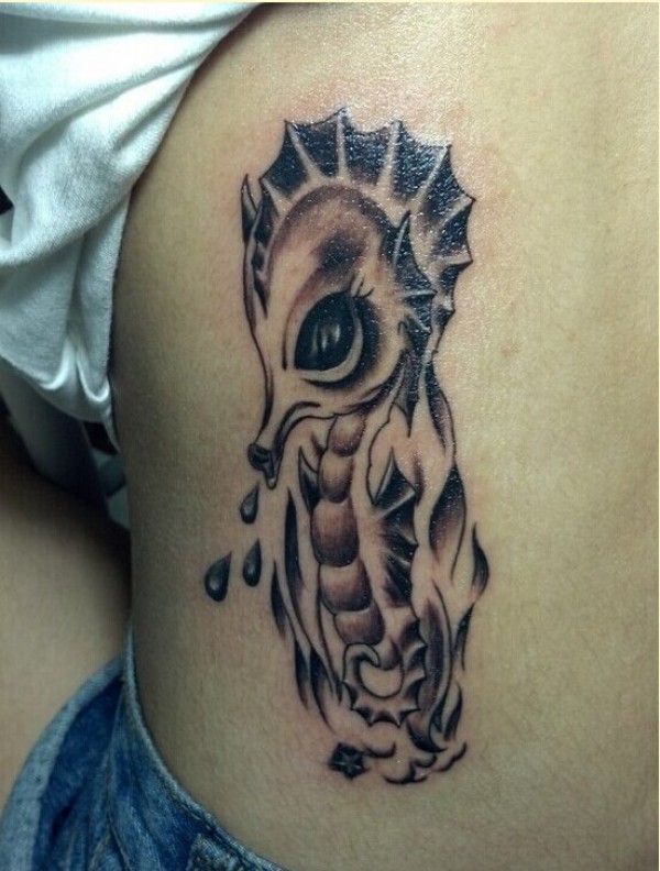 个性侧腰时尚海马纹身图案