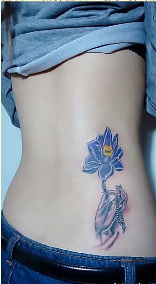 女性腰部莲花花纹刺青_腰部纹身图案大全_纹身图吧