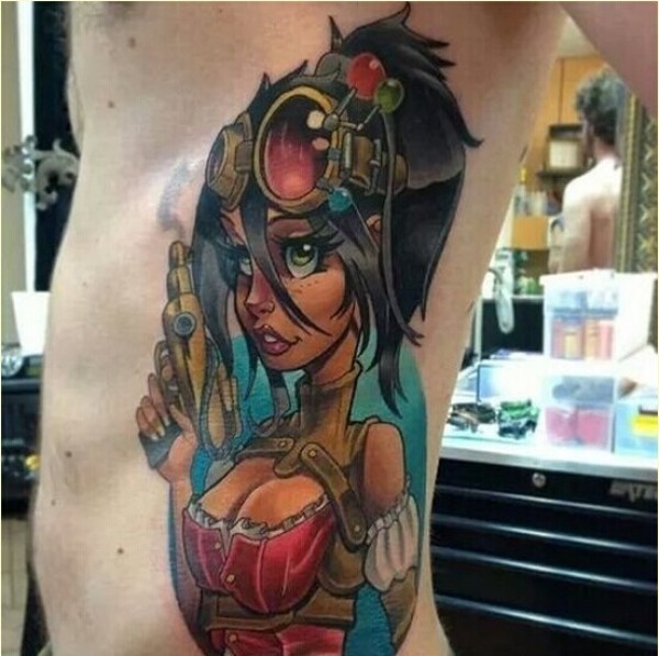 时尚侧腰个性女郎纹身图案欣赏图片