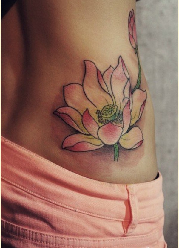 女性腰部莲花花纹刺青_腰部纹身图案大全_纹身图吧